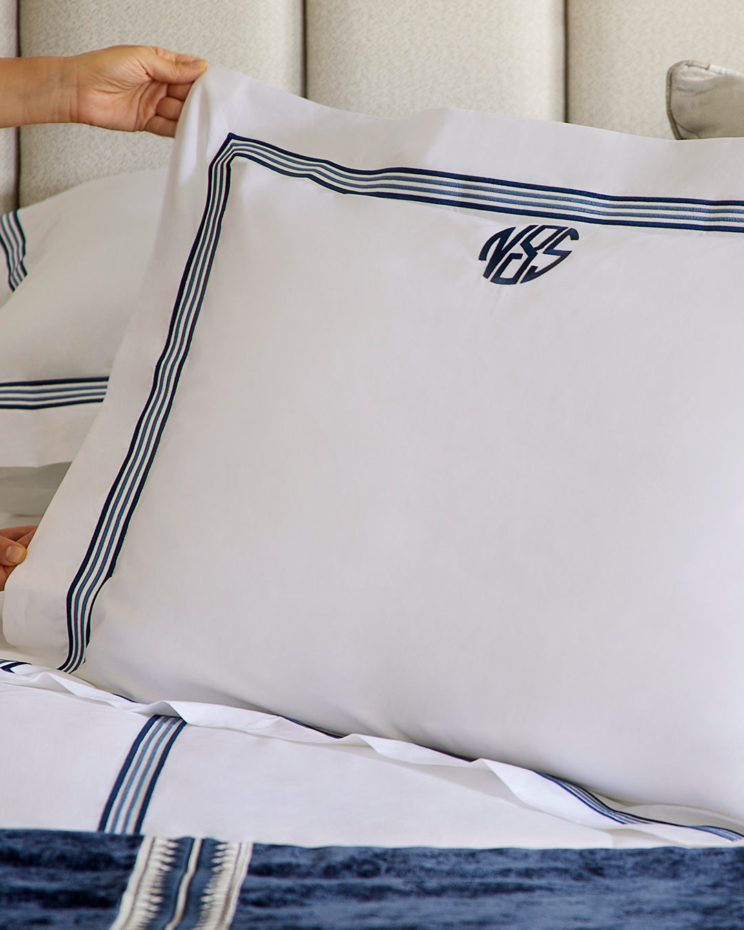 For those who want something truly individual, our bespoke service allows you to personalise every element of your linens. From tailored sizing to fabric choice, embroidery, monogramming and colour detailing, each piece is created to your exact specifications by our craftspeople in Lancashire.